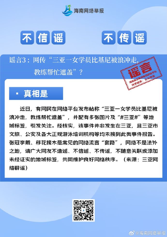 网传“三亚一女学员比基尼被浪冲走,教练帮忙遮盖”?领取育儿补贴需先交保证金?……注意!9月这些信息都是谣言,千万别信!一组辟谣海报带你了解真相↓↓
