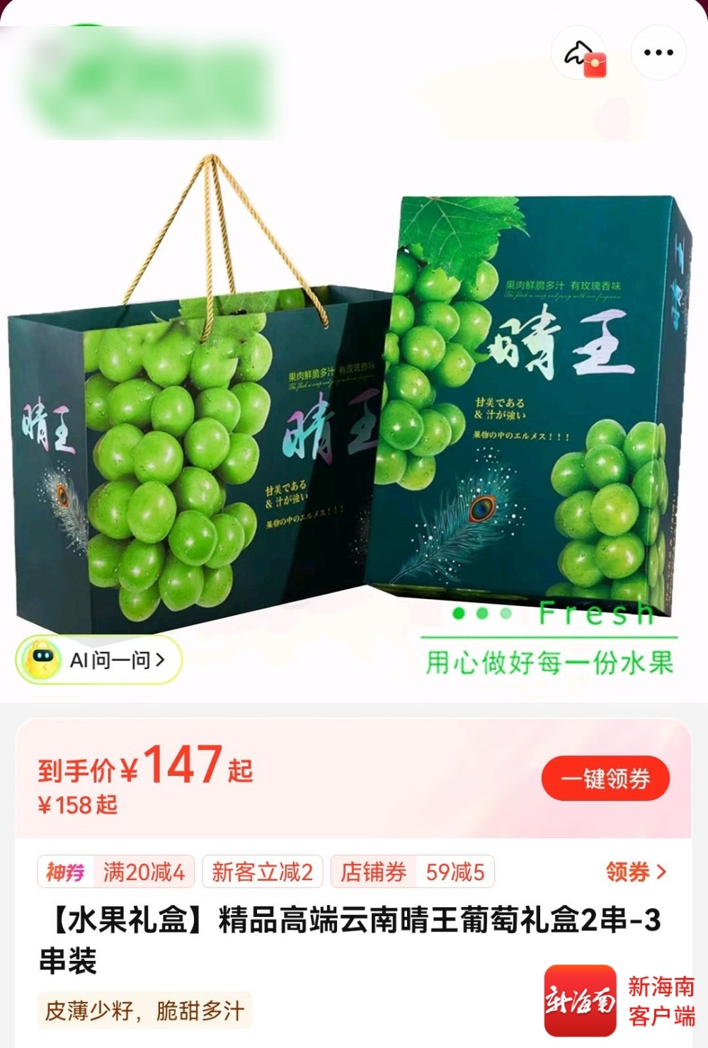 水果网店称葡萄是进口的“晴王”个别商家还有售“晴王”包装礼盒