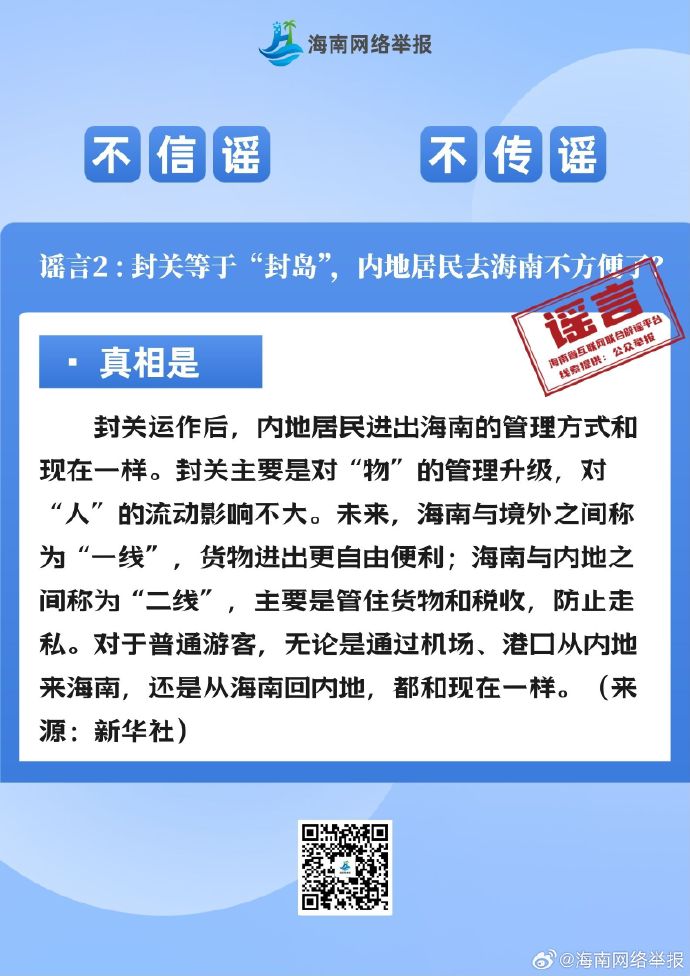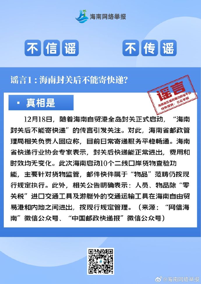 海南封关后不能寄快递?封关等于“封岛”,内地居民去海南不方便了?海南会成为“避税天堂”?……12月份这些信息都是谣言,千万别信!详戳↓↓↓