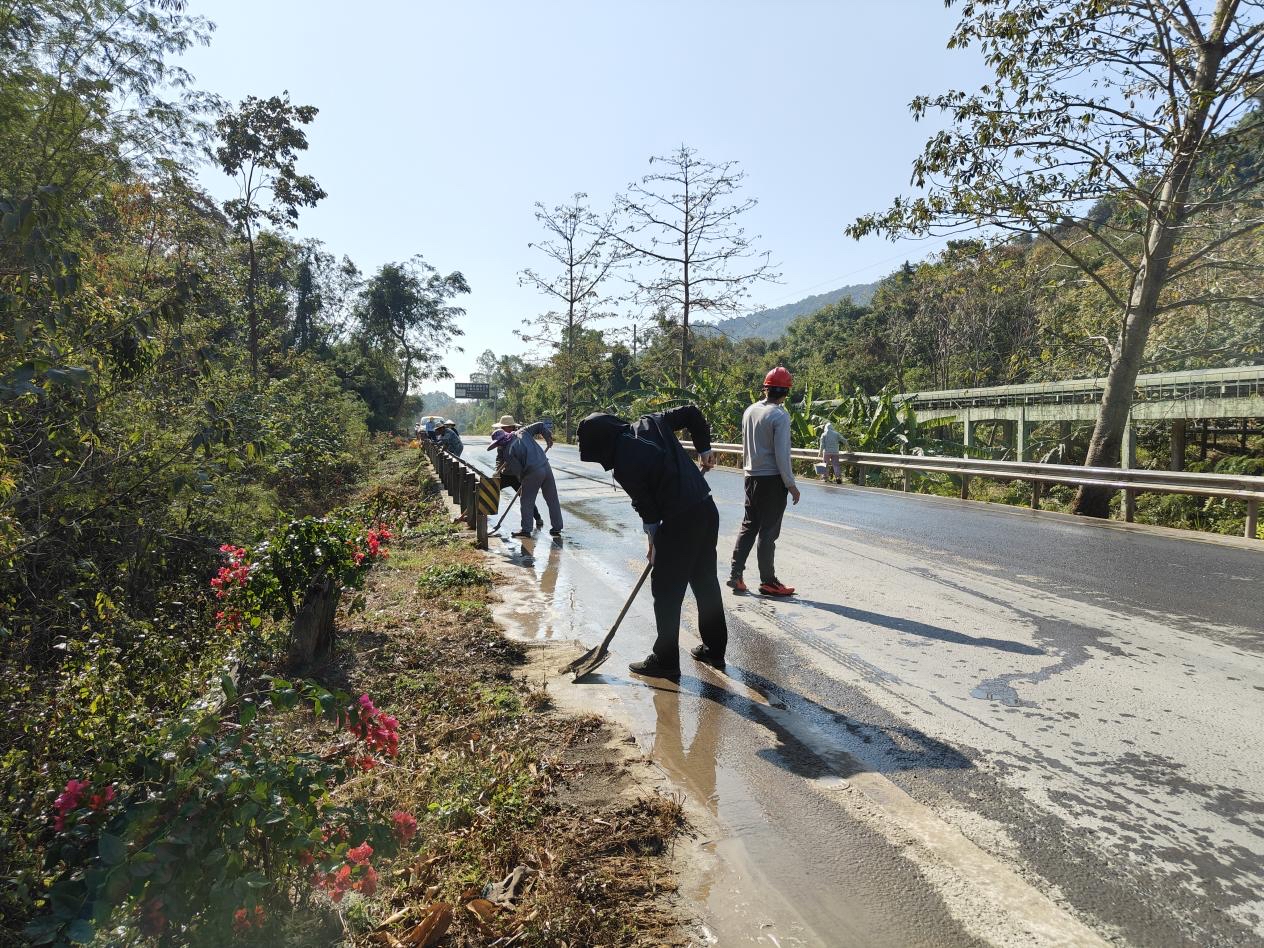 “这条村道是工程车与村民共用的通道,我们将它视为联系群众的‘连心桥’。”据绿峰公司安全环保部副经理唐于伟介绍,该公司一直秉持“绿色发展,安全第一”的理念,为了让村道交通更安全,该公司先后在3.5公里长的村道上安装了路灯、5处流动测速仪、15处交通摄像头以及许多交通警示标识牌。同时,为了减少道路扬尘,绿峰公司还在村道两旁安装了喷淋设备,并每天安排洒水车、扫地车开展降尘和清洁工作。