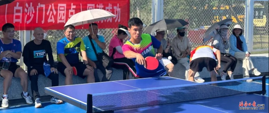 活动现场,近百人齐聚海口市白沙门公园,共同体验乒乓球的包容性,享受乒乓球带来的快乐。