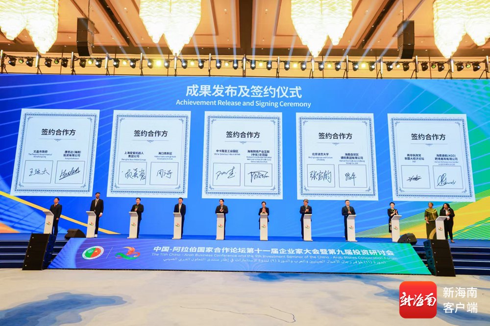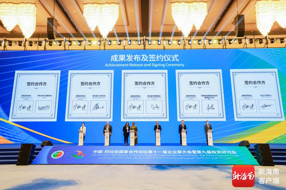 南海网、新海南客户端4月29日消息(记者 谭琦)4月29日,中国-阿拉伯国家合作论坛第十一届企业家大会暨第九届投资研讨会(以下简称“中阿企业家大会”)举办成果发布及签约仪式,发布了中阿企业家大会“海口宣言”,签署了一批合作备忘录,进一步促进中国和阿拉伯国家企业家之间的合作。