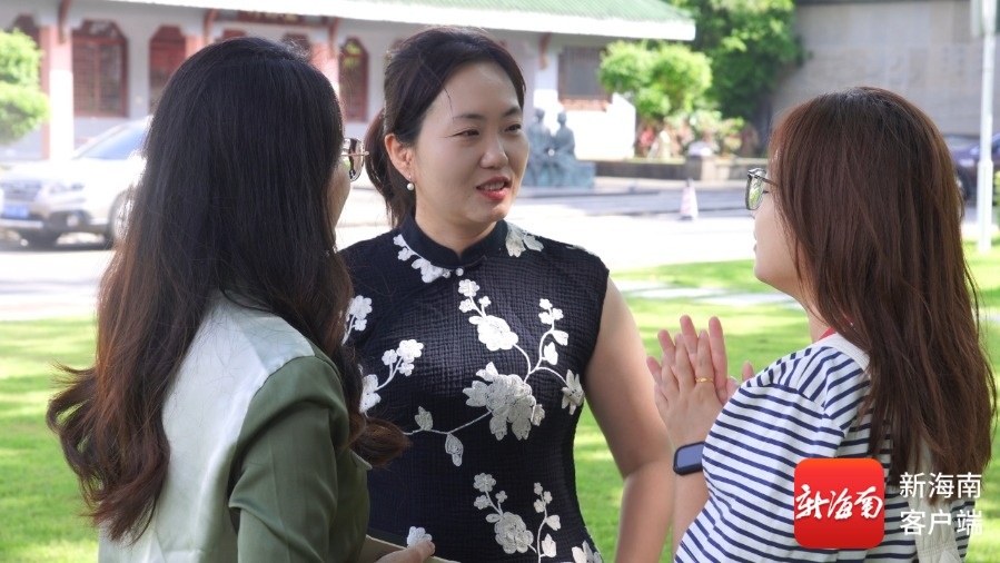 洪艳祺老师正在接受记者采访。记者 莫壮青 摄