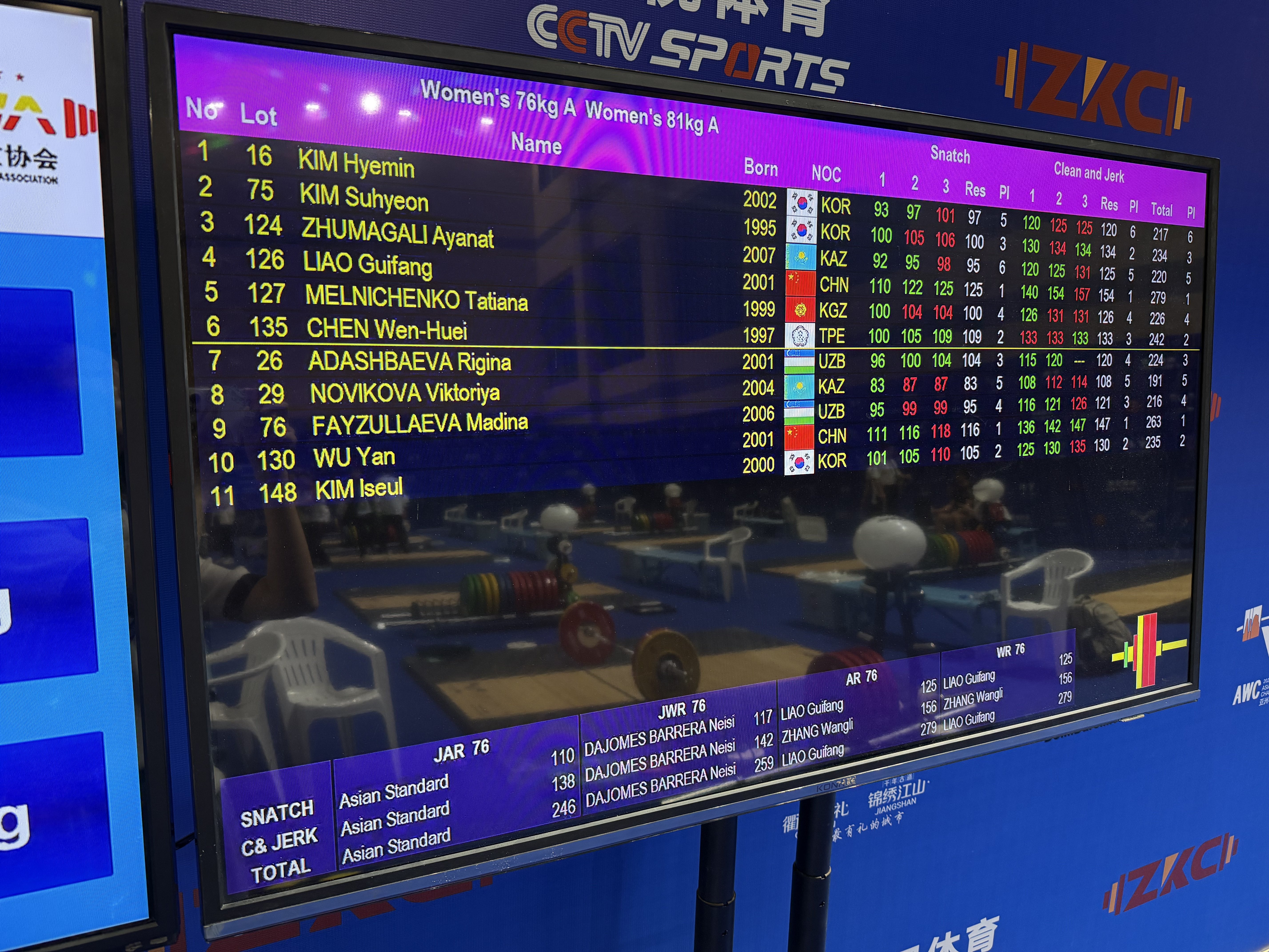 5月13日,在浙江江山举行的举重亚锦赛女子76公斤级决赛中,中国选手廖桂芳以抓举125公斤、挺举154公斤、总成绩279公斤包揽三枚金牌,并打破抓举和总成绩两项世界纪录。