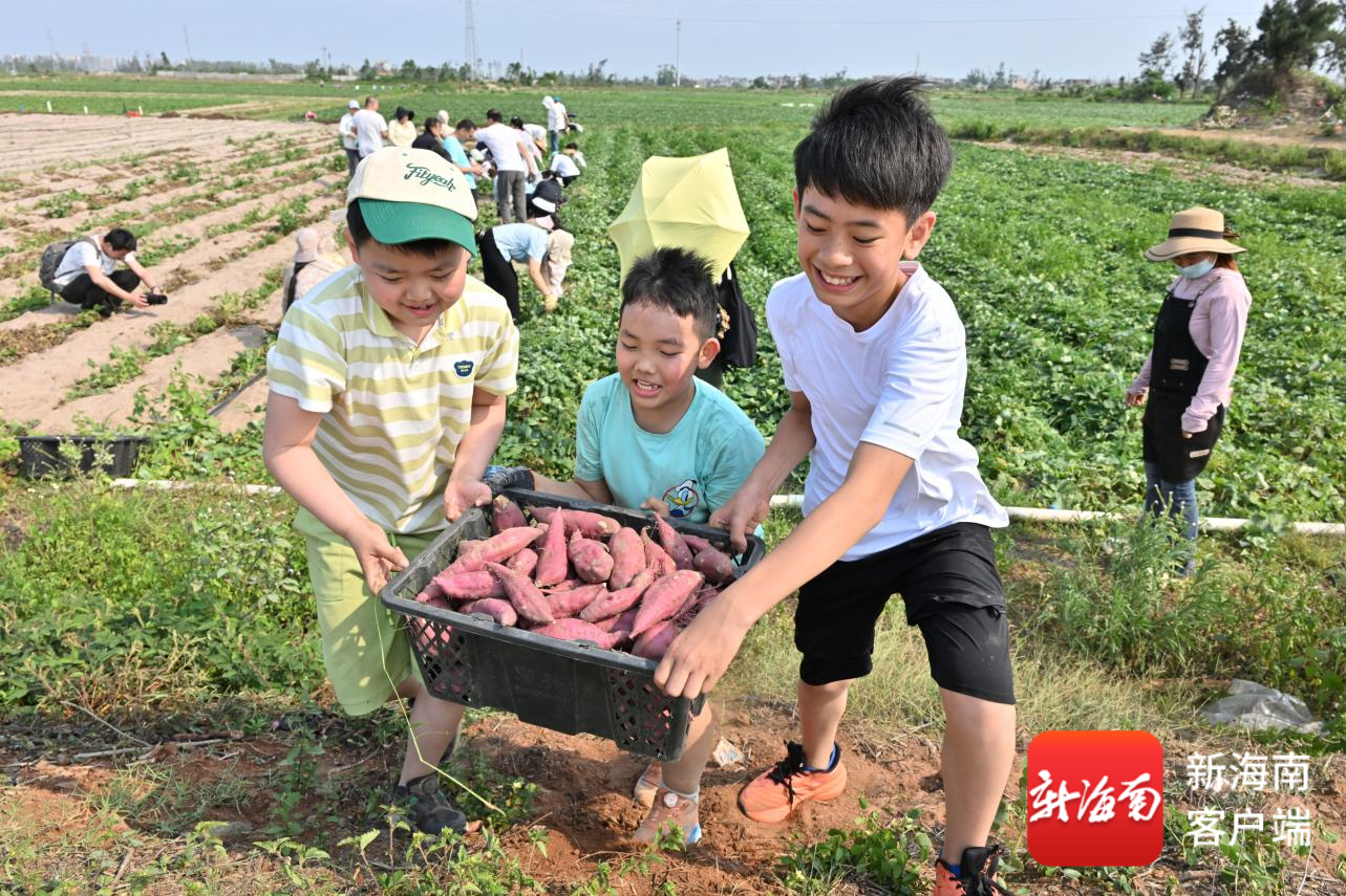 市民游客在澄迈“富硒地瓜之乡”体验挖地瓜乐趣。