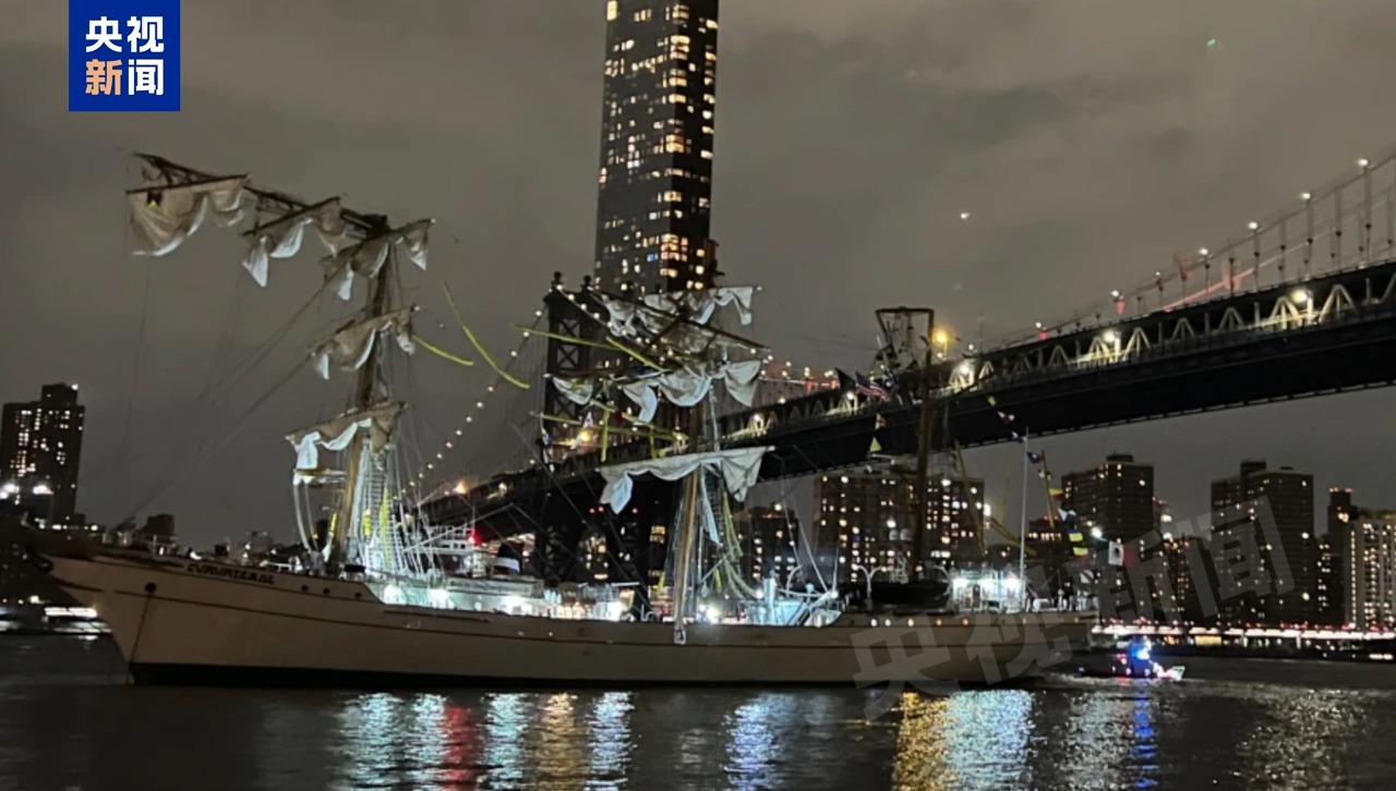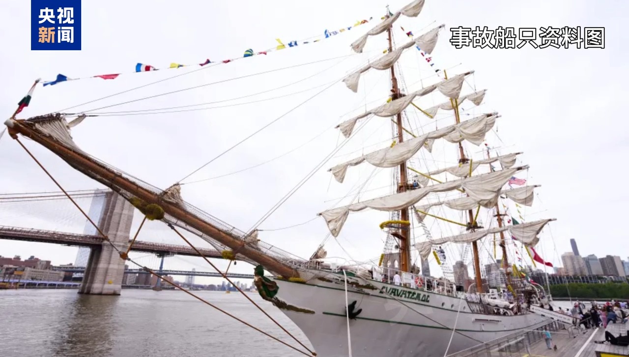 央视记者 徐德智:该船只4月初从墨西哥出发,原计划在经过纽约后前往欧洲,显然该计划现在会被打乱。这艘帆船是在1982年在西班牙建造的,长度90米,宽大约18米,是一艘墨西哥海军用来训练船员的船只,每年都会进行类似的航行。事故发生后,墨西哥海军方面表示,会保障所有船员的安全。