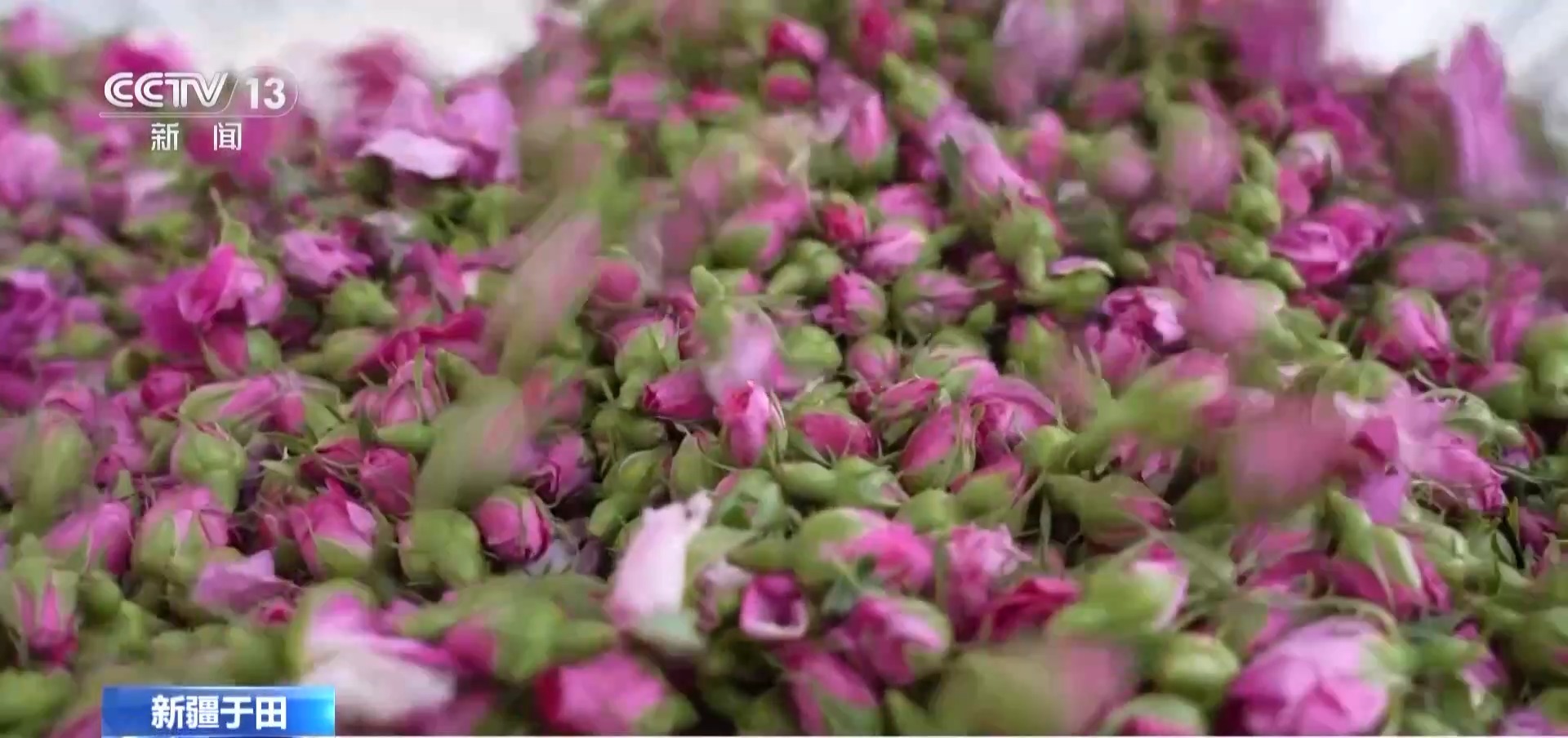 于田县玫瑰花交易市场负责人 吴旭亮:今年玫瑰花行情比较好,价格比往年都高。现在合作社和企业对玫瑰花的需求量都很大,玫瑰花有多少收多少,都是现场交易、现场给钱 。