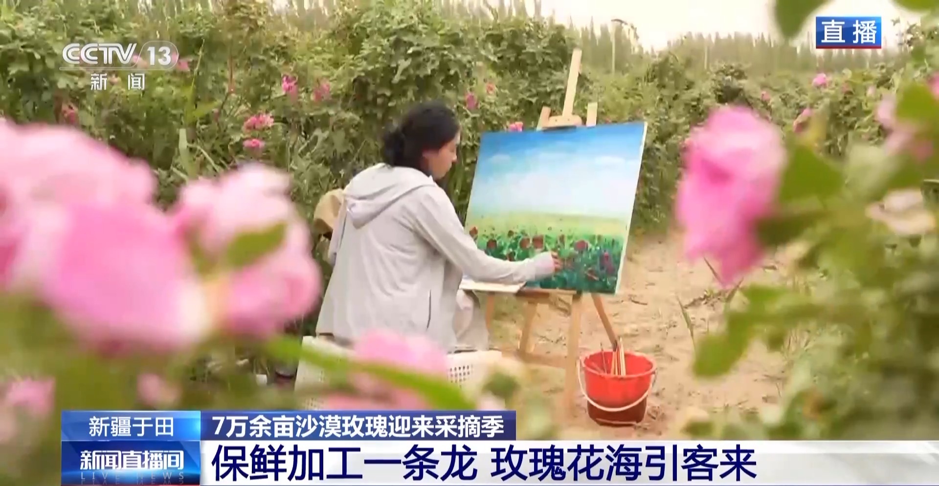 于田县玫瑰花生产加工企业负责人 高经粱:每年玫瑰花采摘高峰期,公司能带动周边7000余人次村民实现季节性就业,他们的工资一般是在120元到150元每天,他们的积极性都非常高。