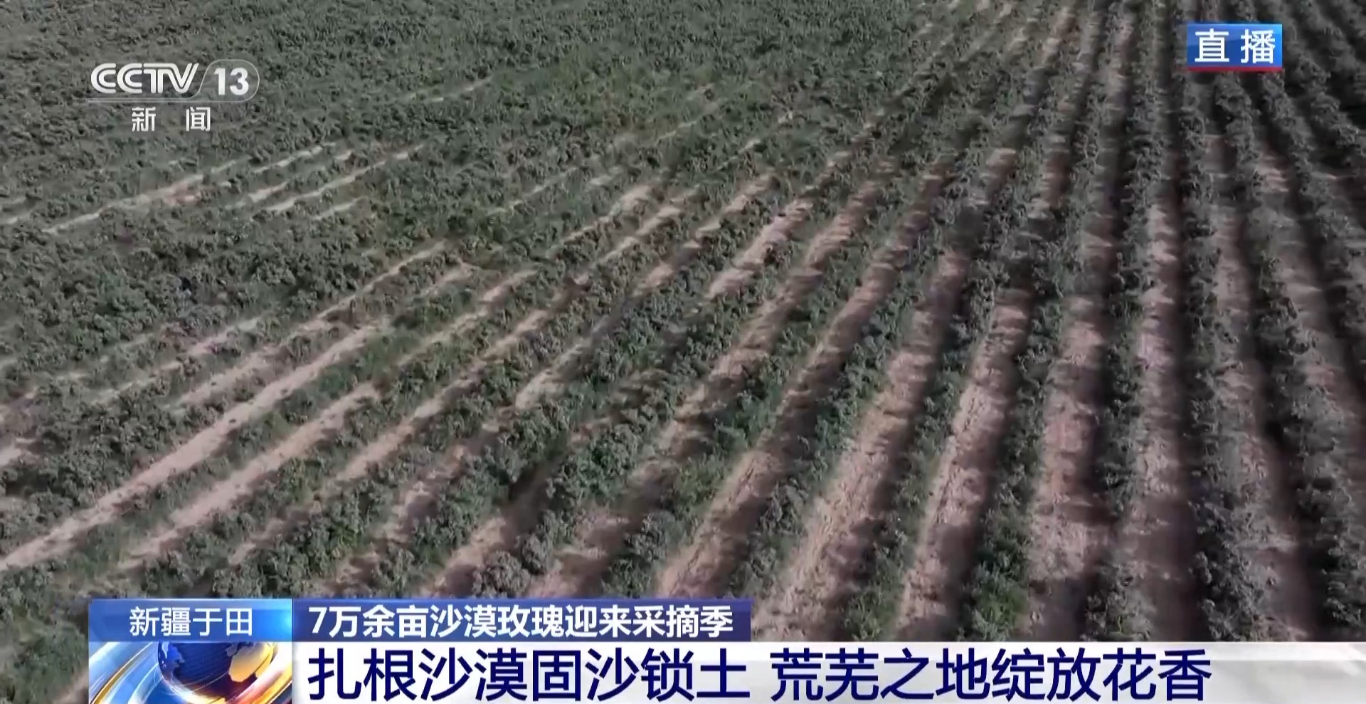 总台记者 卜鹏:在新疆和田地区于田县,去年11月塔克拉玛干沙漠锁边工程最后合龙的地方,当地村民种下了10万株玫瑰。在现场我们可以看到,有一些玫瑰已经开始绽放。在这里,当地玫瑰的存活率达到了90%,为这片广袤的沙海带来绿色生机。