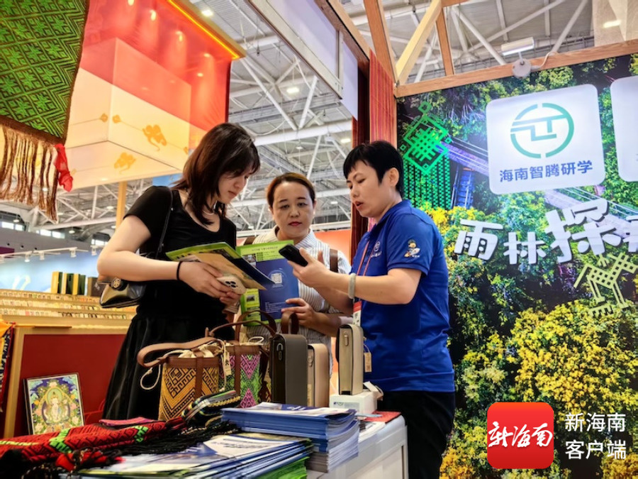 展会上,海南省研学旅游协会组织槟榔谷、耕读山房、智腾研学等单位联合参展,通过实体展台、电子手册、黎苗文创产品、黎族传统纺染织绣技艺展示等,重点呈现“航天、海洋、雨林黎苗文化”等特色主题研学线路。