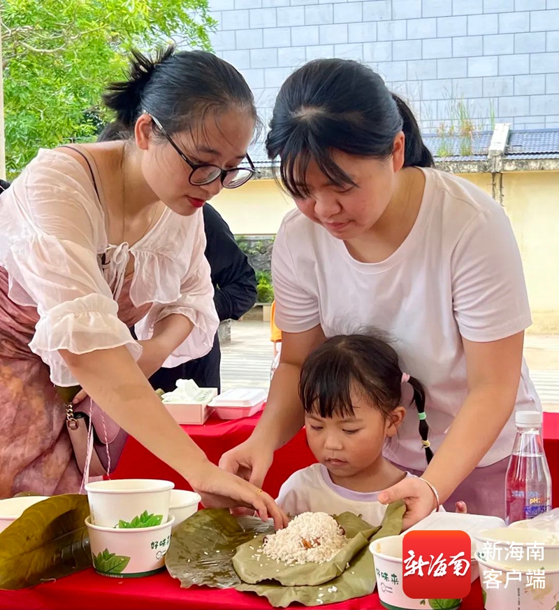 大手拉小手一起包粽子。万宁市委宣传部供图