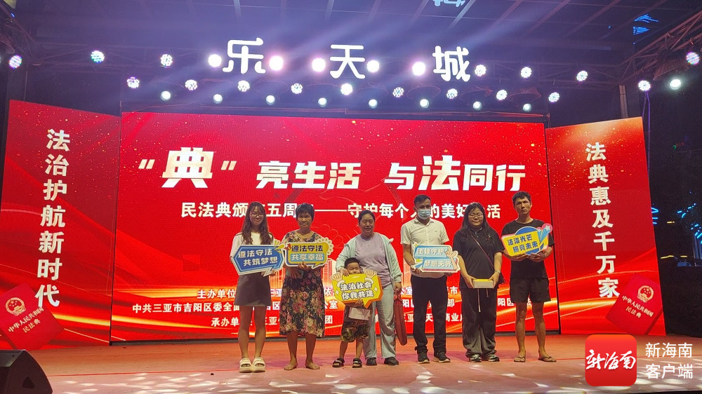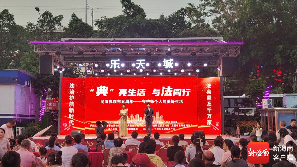南海网、新海南客户端5月28日消息(记者 符彩云)今年5月是全国第五个“民法典宣传月”。5月28日,“典” 亮生活·与法同行——“民法典”颁布五周年纪念普法晚会在三亚市乐天城广场开展。