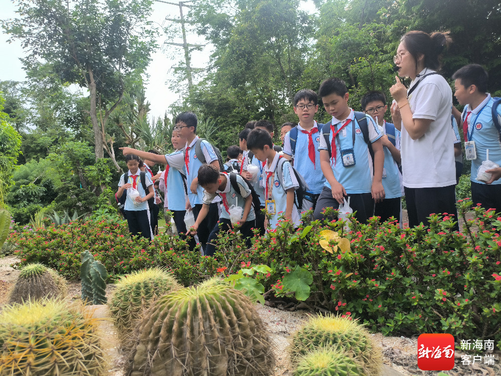 在妙趣横生的热带植物研学环节,同学们开启了一场奇妙的科学探索之旅:他们亲手触摸药用价值独特的鳞茎 “三仙子”,围着葫芦树研究那看似诱人却不可食用的神奇 “铁西瓜”,在专业讲解中认识民间草药两面针的独特功效,更通过沙生植物的生存智慧,领悟大自然赋予生命的顽强韧性。