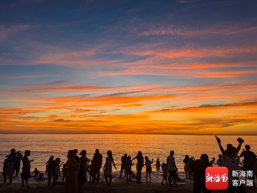6月1日傍晚,海口市西海岸荣山寮渔村上空出现绚丽晚霞。记者 颜乐驰 摄