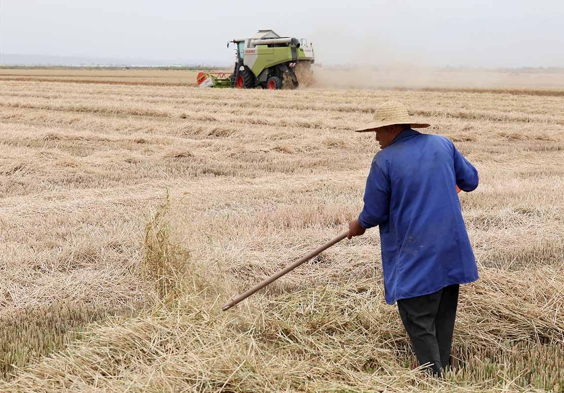 “快!快把传送带再调高些!”种植户田源踮着脚,冲着工人喊道。这位在农场扎根三年的汉子,今年照看260多亩麦田。望着不断吐出麦粒的机械,他黝黑的脸上露出欣慰的神情。