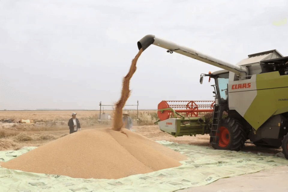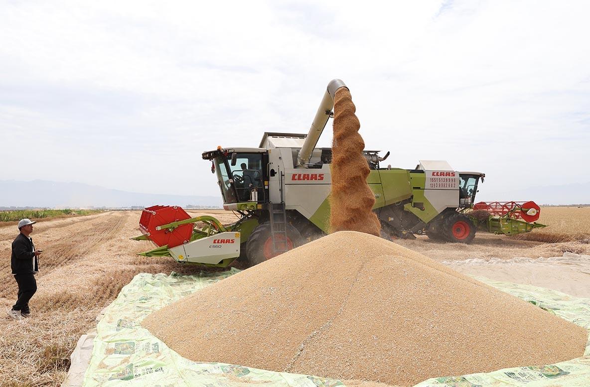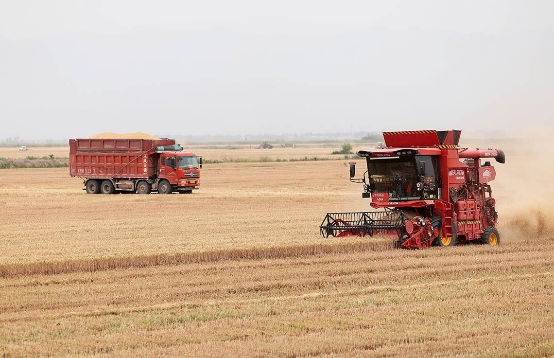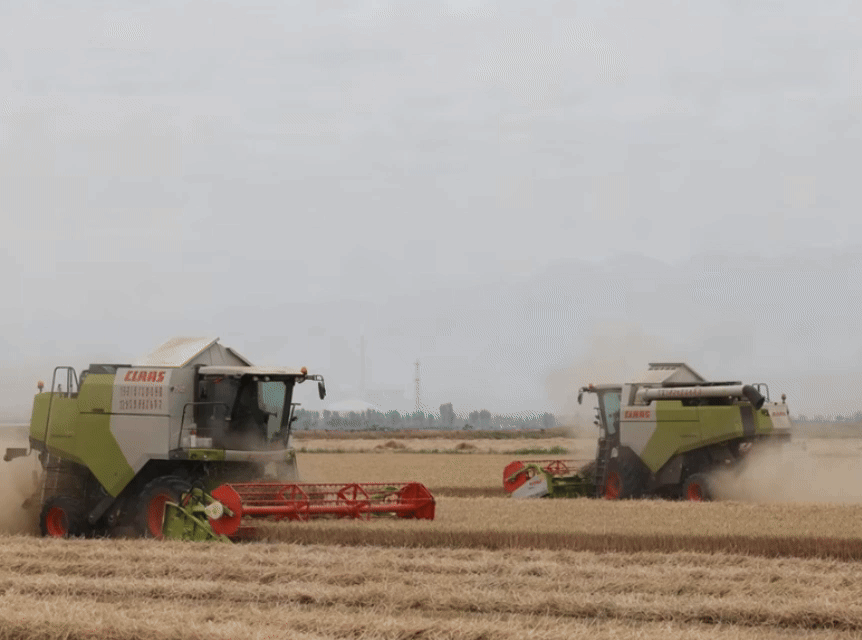 但李怀斌话锋一转,指着远处轰鸣的大型收割机说:“不过科技也在‘省钱’。就拿这进口收割机来说,5米6宽的刀具,20分钟就能装满5吨麦子,机损率几乎可以忽略不计。要是以前使用的那种小型机械,麦粒撒得满地都是。”