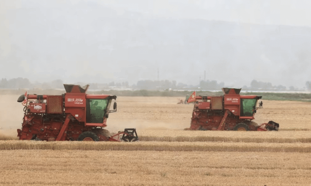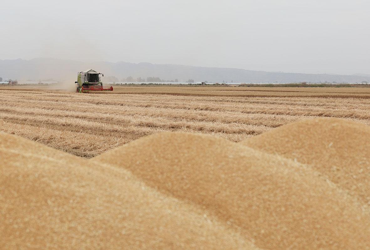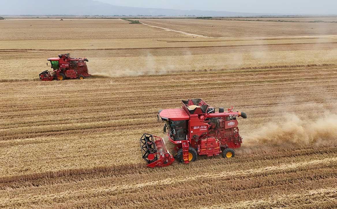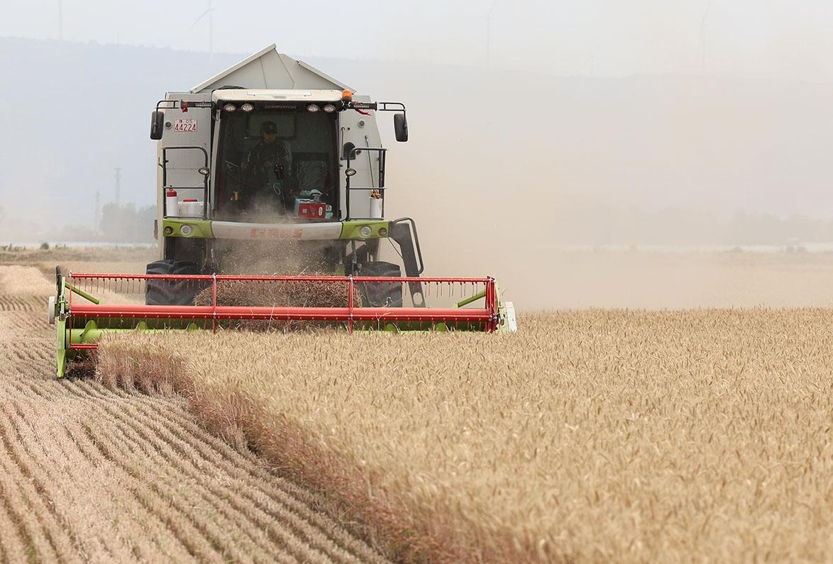 但李怀斌话锋一转,指着远处轰鸣的大型收割机说:“不过科技也在‘省钱’。就拿这进口收割机来说,5米6宽的刀具,20分钟就能装满5吨麦子,机损率几乎可以忽略不计。要是以前使用的那种小型机械,麦粒撒得满地都是。”