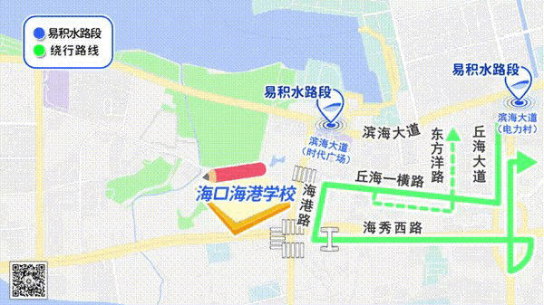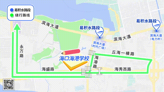 1、滨海大道秀英时代广场路段;