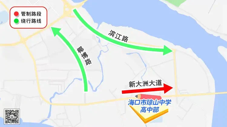 6月8日(周日)14:50-15:20高考英语听力测试期间,琼山大道西半幅(新大洲大道路口至顺达路口)禁止通行,非考试车辆请选择滨江路或椰海大道绕行。
