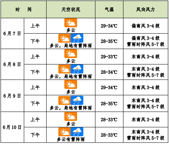 预计,今年高考和选择考期间,受偏南气流影响,我市多午后雷阵雨天气,局地伴有短时强降水、雷雨大风等强对流天气。