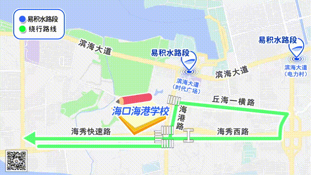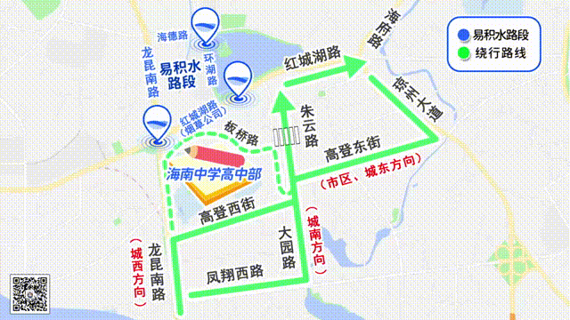 受人民大道(海甸六路至人民桥)路段施工以及海达路海甸二东路、海甸三东路口积水影响,建议送考车辆绕行以下路线进出海甸岛:
