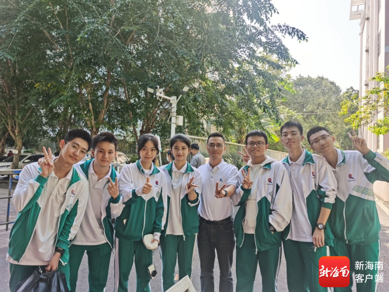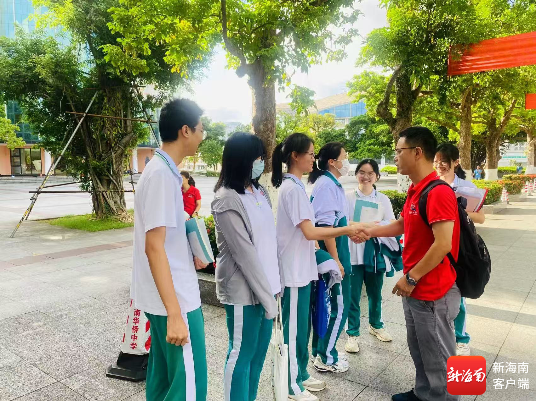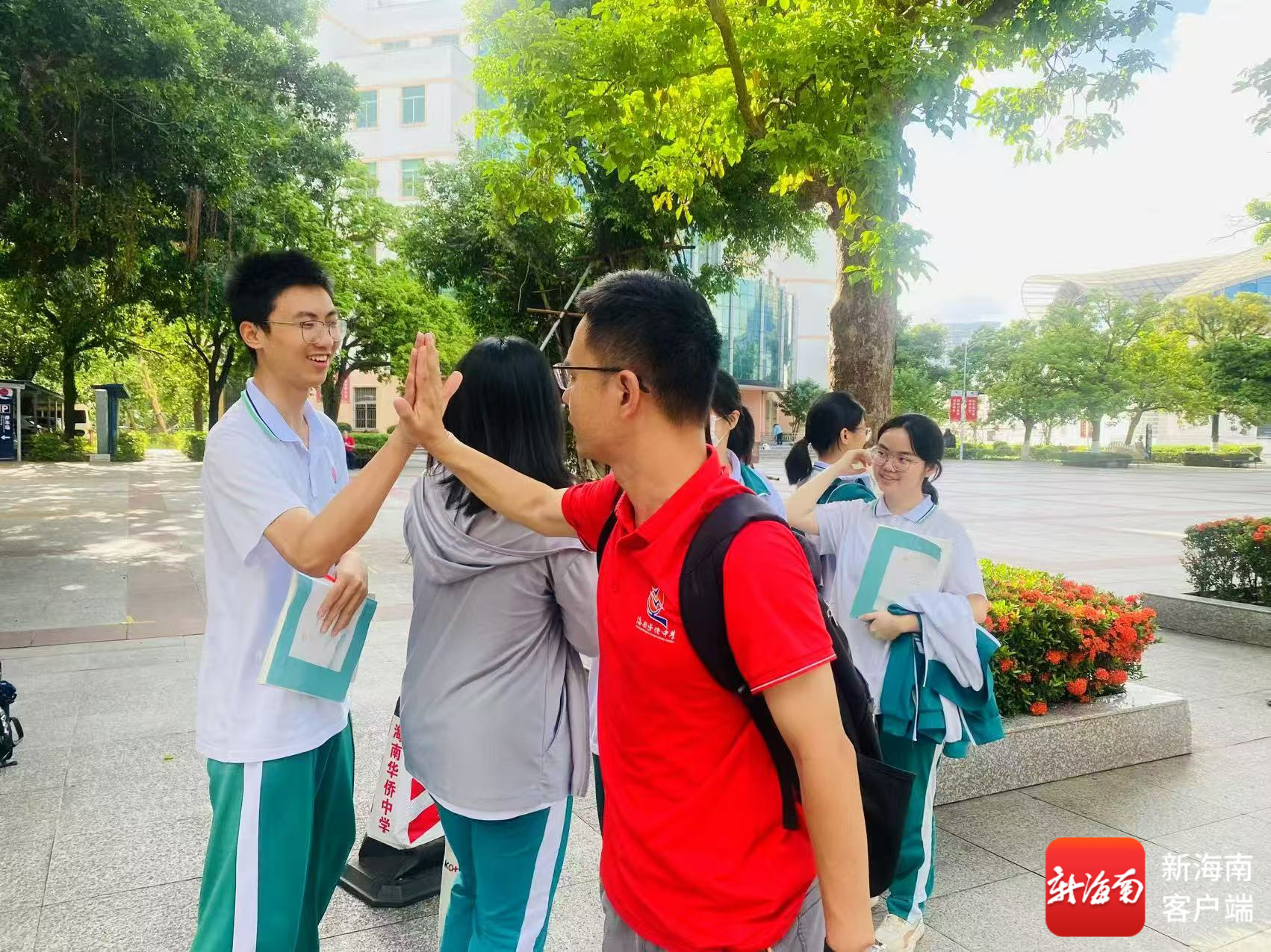 高考首日,徐永清老师为考生加油打气。受访者供图