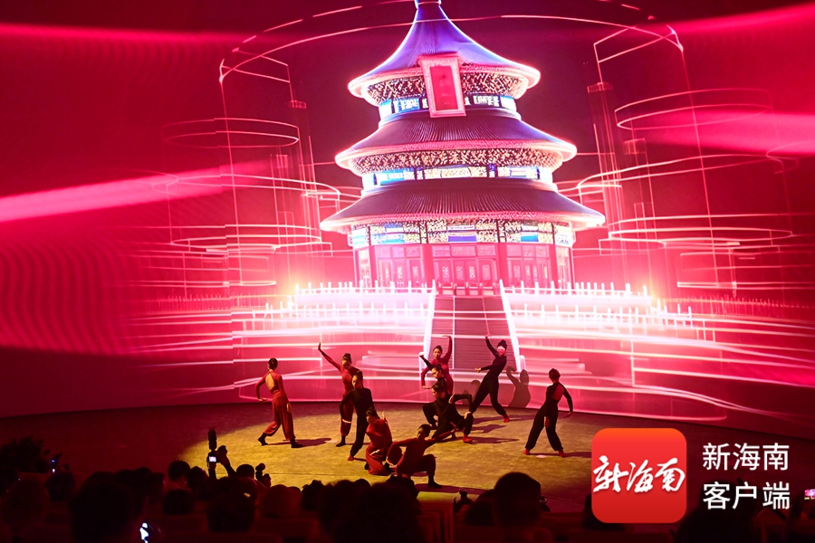 随后进行的开幕式演出在绛州鼓乐《黄河船夫》的磅礴鼓点中拉开帷幕,“急如暴雨、缓如行云”的节奏,再现黄河船夫与风浪搏击的壮阔场景。紧接着,歌手一袭银饰盛装亮相,带来原生态苗语歌曲《苗岭飞歌》,清亮的嗓音配合着悠扬的伴奏,仿佛将观众带到了云雾缭绕的苗岭山乡。非遗舞蹈《榫卯》以现代舞形式诠释传统技艺的精髓。《敲敲叮咚赶鸟兽》则生动再现了黎族同胞田间劳作的场景。当《数字敦煌》的乐声响起,舞者们身着数字化处理的敦煌服饰,在投影技术的配合下,壁画中的飞天形象"活"了过来。最后,南山艺术团带来的合唱《家园》《永远的邀请》为开幕式演出画上圆满句号。