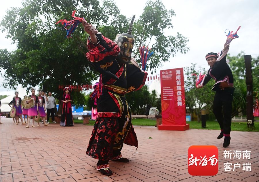 海南苗族盘皇舞表演。记者 沙晓峰 摄