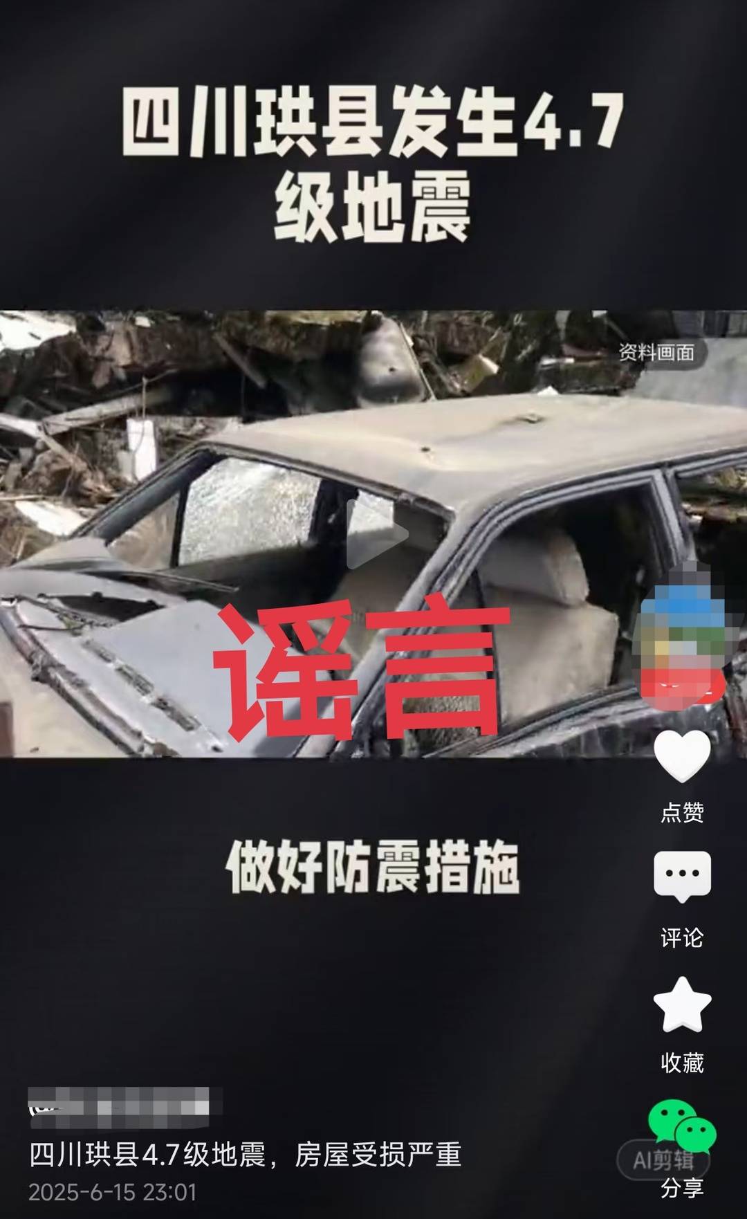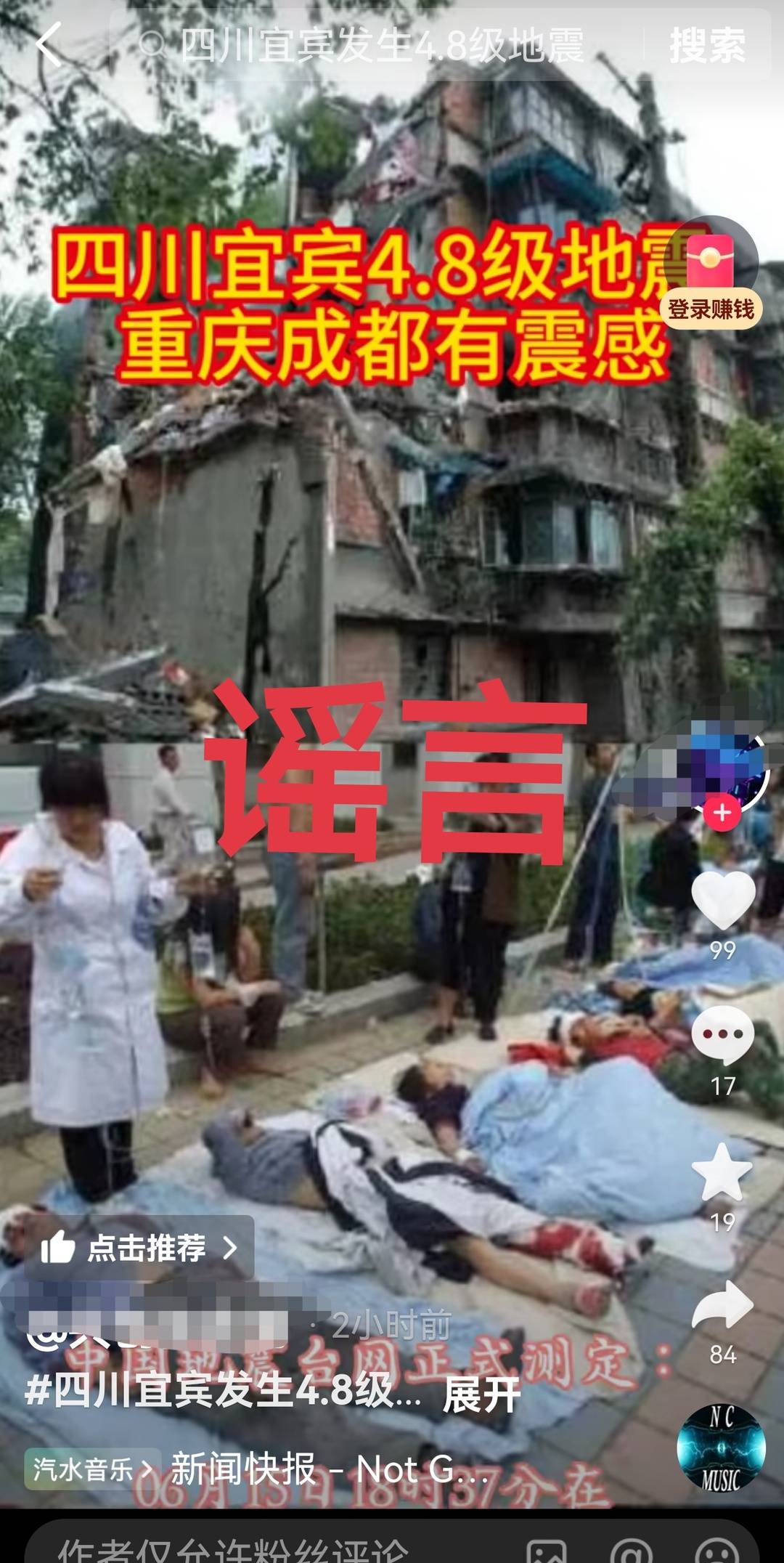 四川宜宾珙县4.8级地震导致多人伤亡?官方:谣言!