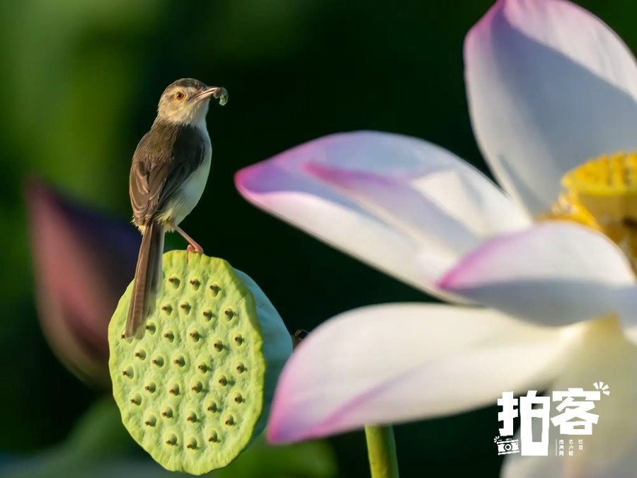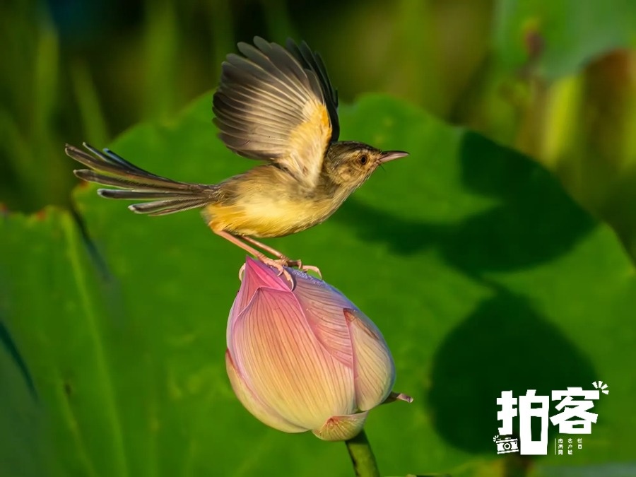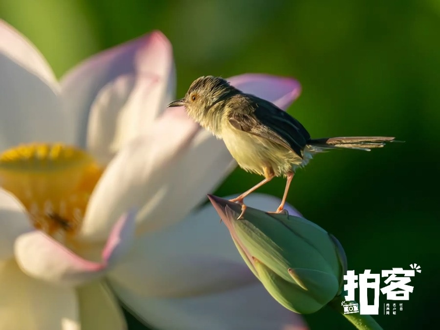 今天在海口江东仲凯村旁的荷塘边,荷风轻拂,鸟影与花影共舞,荷花仿佛按下了快门键,定格下小鸟的俏皮瞬间——这场鸟与荷的美丽相遇,正是大自然最和谐的和弦。