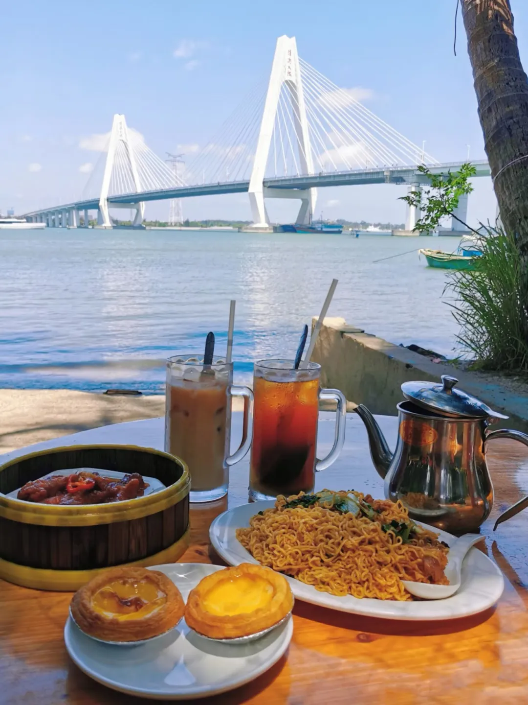 走到清澜大桥附近,还能品尝海边的老爸茶,美食、美景一次性满足。迎着下午的暖阳,吹着轻轻的海风,在海边吃上一桌“伯爹”最爱的文昌老爸茶,简直不要太惬意!