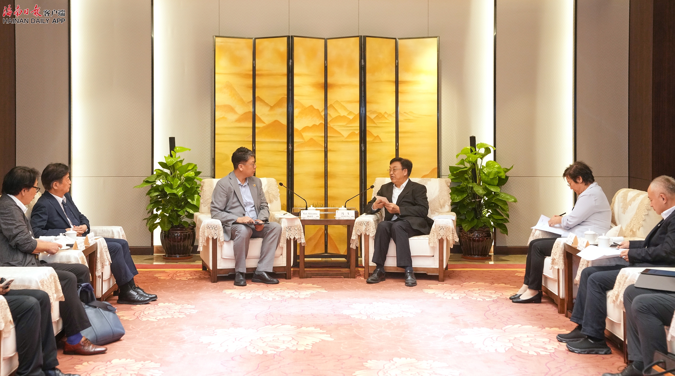 海南日报海口7月21日讯(海南日报全媒体记者李磊)7月21日,省委书记冯飞在海口会见日本关西中华总商会常务副会长秋山景一行。