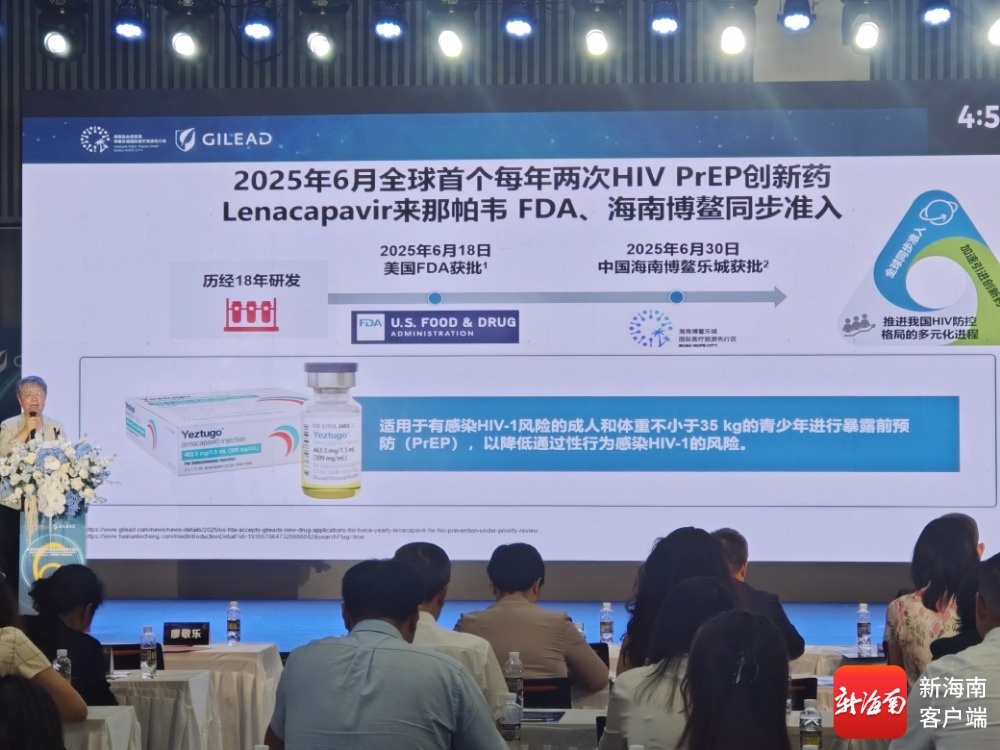南海网、新海南客户端7月25日消息(记者 苏桂除)7月25日,全球艾滋病预防重磅进展成果交流会暨Lenacapavir(来那帕韦)落地发布会在博鳌乐城国际医疗旅游先行区(以下简称“乐城先行区”)举行。一年仅需给药两次的HIV暴露前预防(PrEP)药物Lenacapavir正式落地乐城先行区,标志着我国HIV防控正式迈入“一年两次”的长效防护时代。