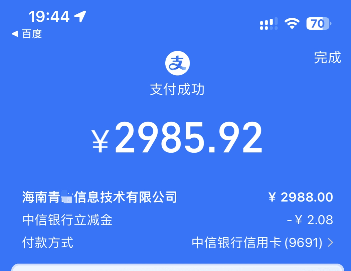 张女士被骗的钱其中一笔汇入海南青×信息技术有限公司。受访者供图
