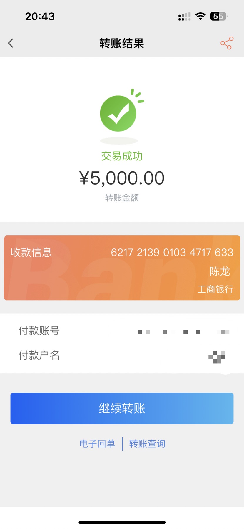另据张女士介绍,她转出的钱中有5000元进了“陈龙”个人账号,其余转入了杭州一家公司,目前均无法联系。