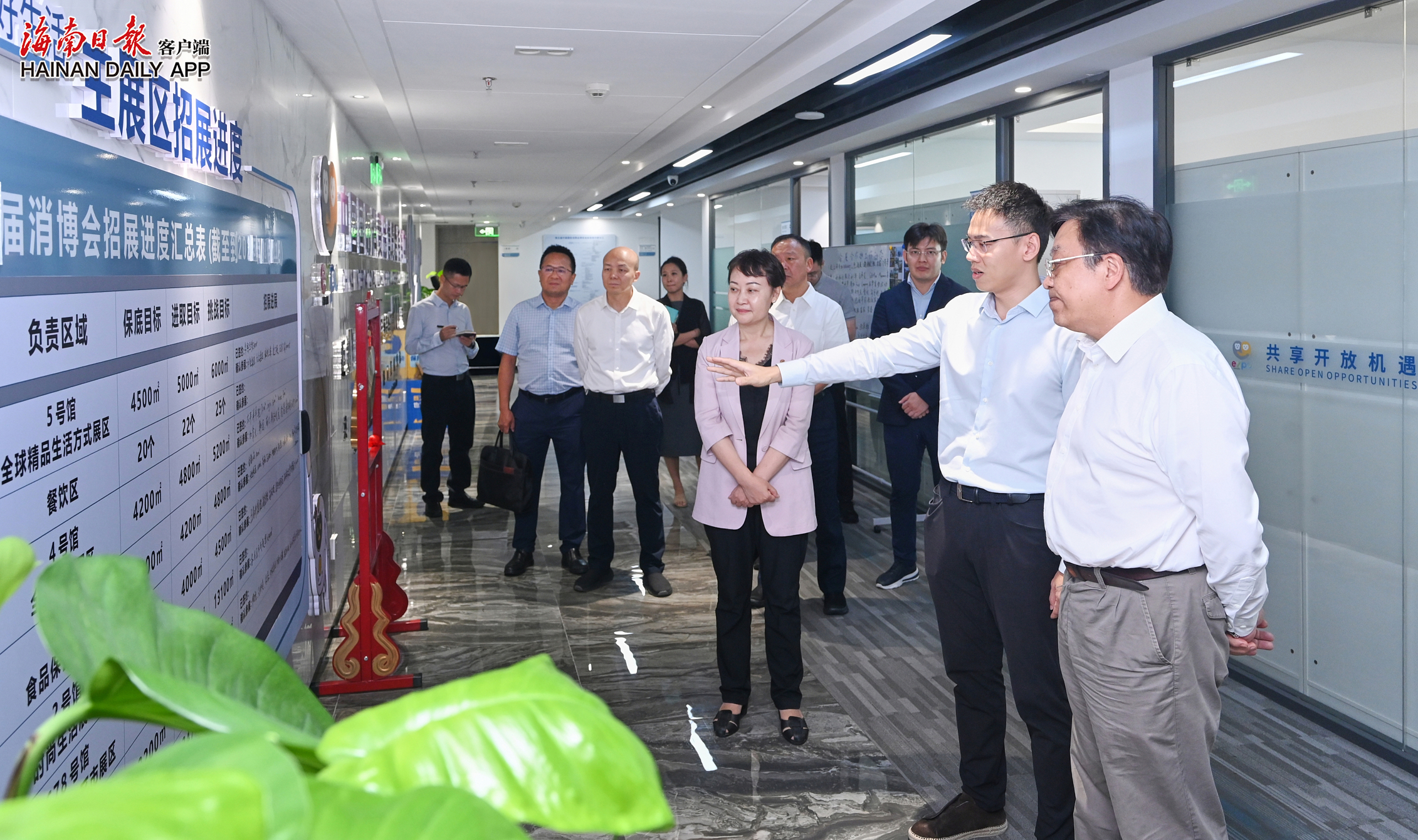 冯飞来到相关业务部门,了解招商引资、第六届消博会招展、全球企业服务、跨境数据服务以及国际贸易单一窗口建设和运行等工作。他强调,要提早谋划消博会筹备工作,聚焦优质消费企业和采购商,精准招引头部企业,吸引更多国内外企业和机构关注并参与消博会,确保一届更比一届好。要高标准高质量建设“企航自贸港”一站式服务平台和中国(海南)国际贸易单一窗口,加强信息共享和工作衔接,树牢服务企业意识,为企业提供全生命周期服务。