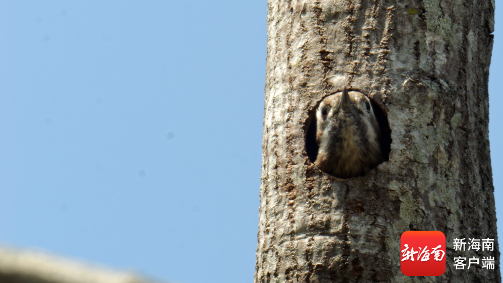 南海网、新海南客户端8月15日消息(记者 谭琦)在一棵高大乔木的树干上,一只星头啄木鸟刚刚凿出了一个新家。