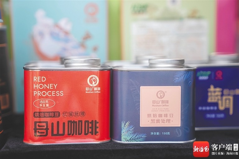 7月14日,在首届骑楼老街咖啡文化节上的母山咖啡产品。海南日报全媒体记者 李天平 摄