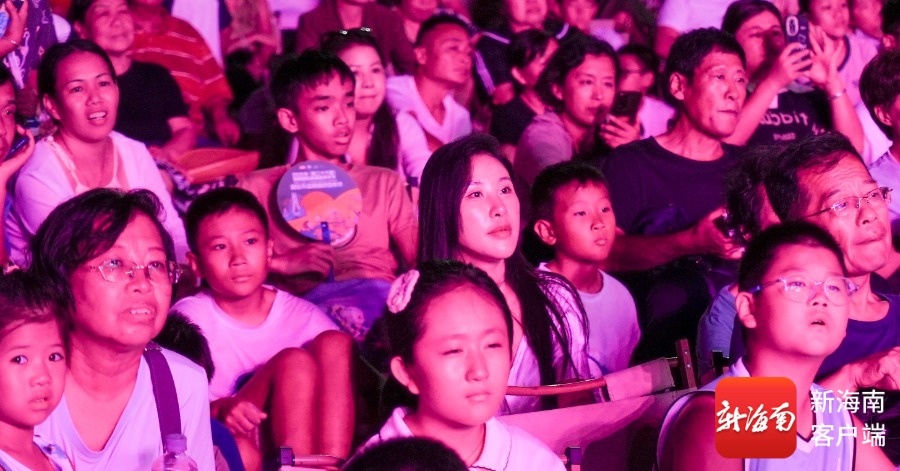 《我的纸飞机啊》等热门曲目引起现场大合唱。市民游客在习习海风中开启集光影、音乐、美食与烟花交织的狂欢之夜。