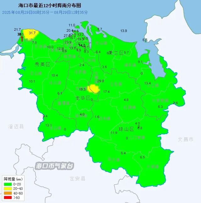 ● 海口市气象台2025年08月29日12时33分发布暴雨橙色预警信号:受南海热带低压影响,预计未来6小时我市累积降水量将达100毫米以上,建议有关单位和人员做好防范工作。