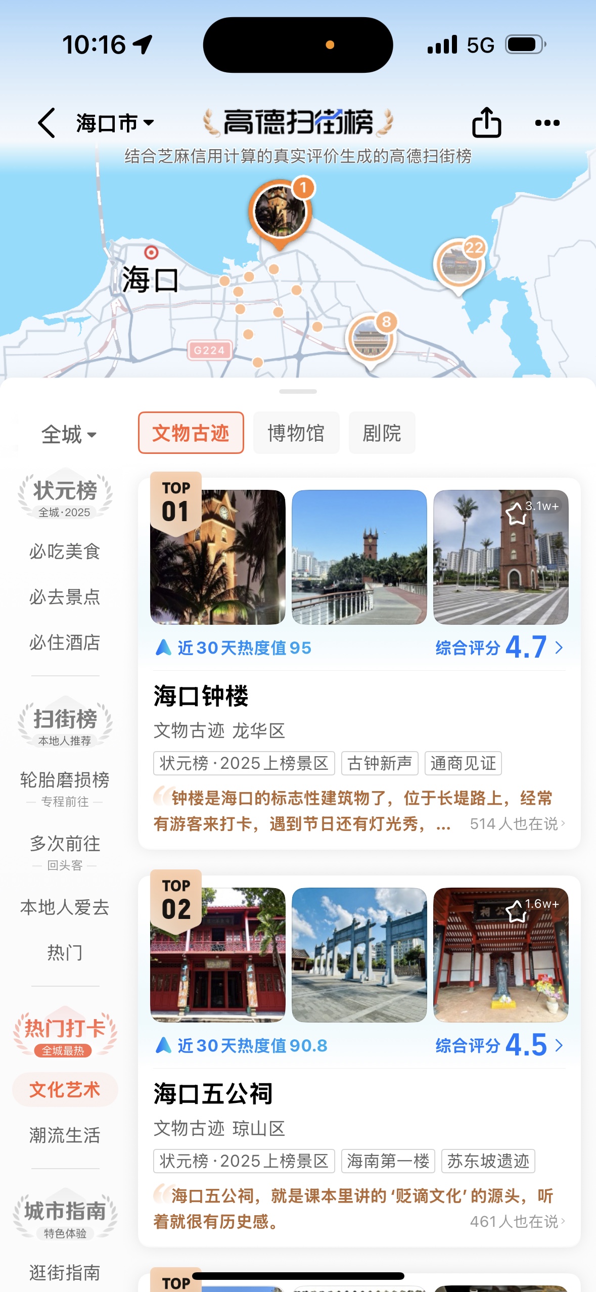 9月10日,“高德扫街榜”在杭州正式发布,记者在高德APP上看到,海口、三亚、儋州等海南多个市县的“扫街榜”已出炉,涉及美食、景点、酒店等领域,让寻找“烟火气”有了更多选择。