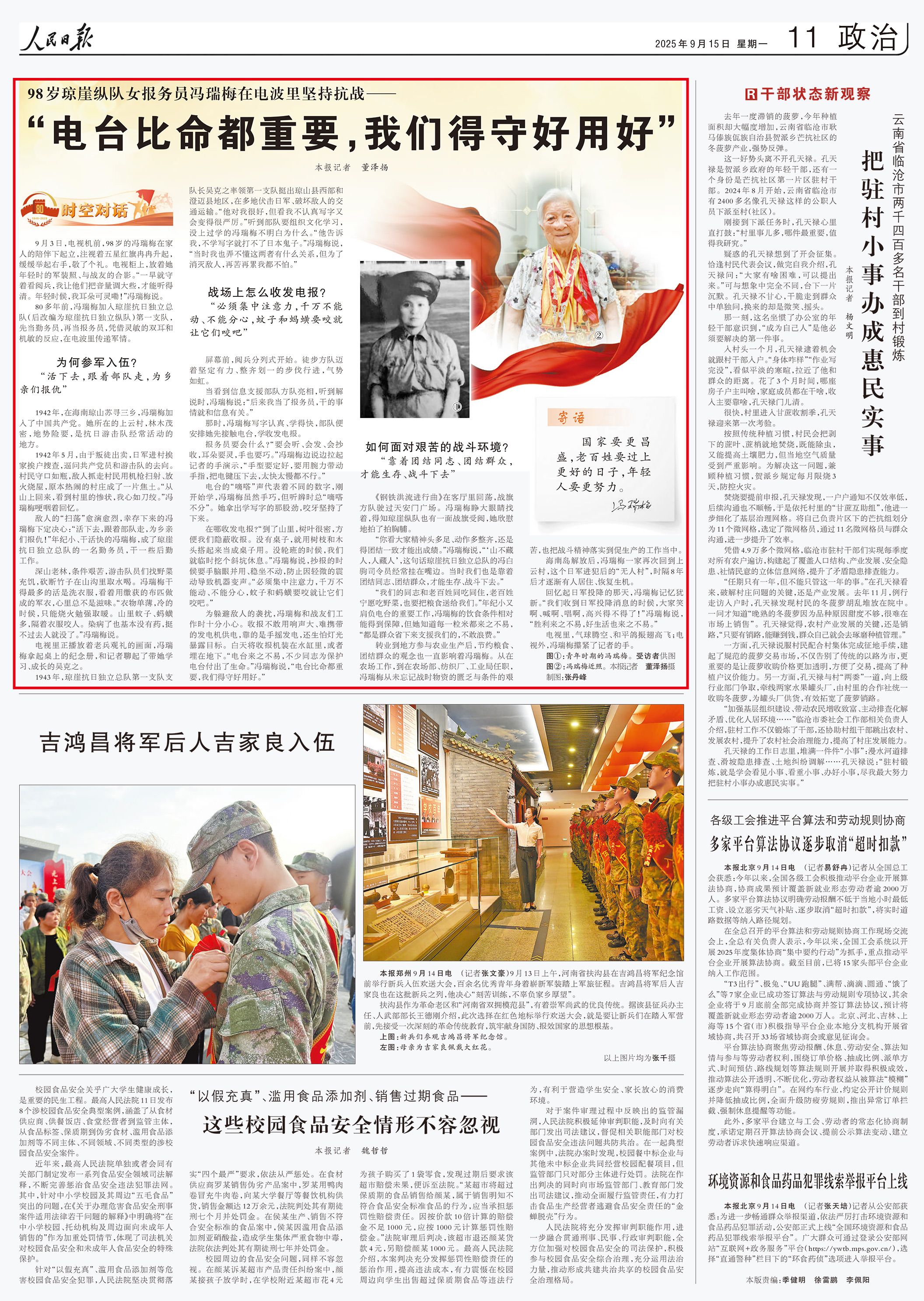 回忆起日军投降的那天,冯瑞梅记忆犹新。“我们收到日军投降消息的时候,大家笑啊、喊啊、唱啊,高兴得不得了!”冯瑞梅说,“胜利来之不易,好生活也来之不易。”