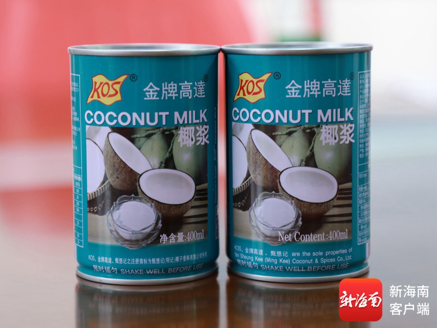 甄想记公司的罐头椰浆产品。记者 洪盛伟 摄