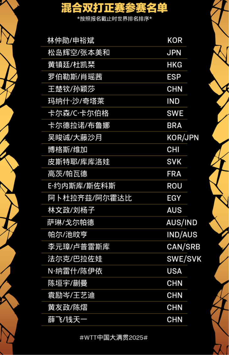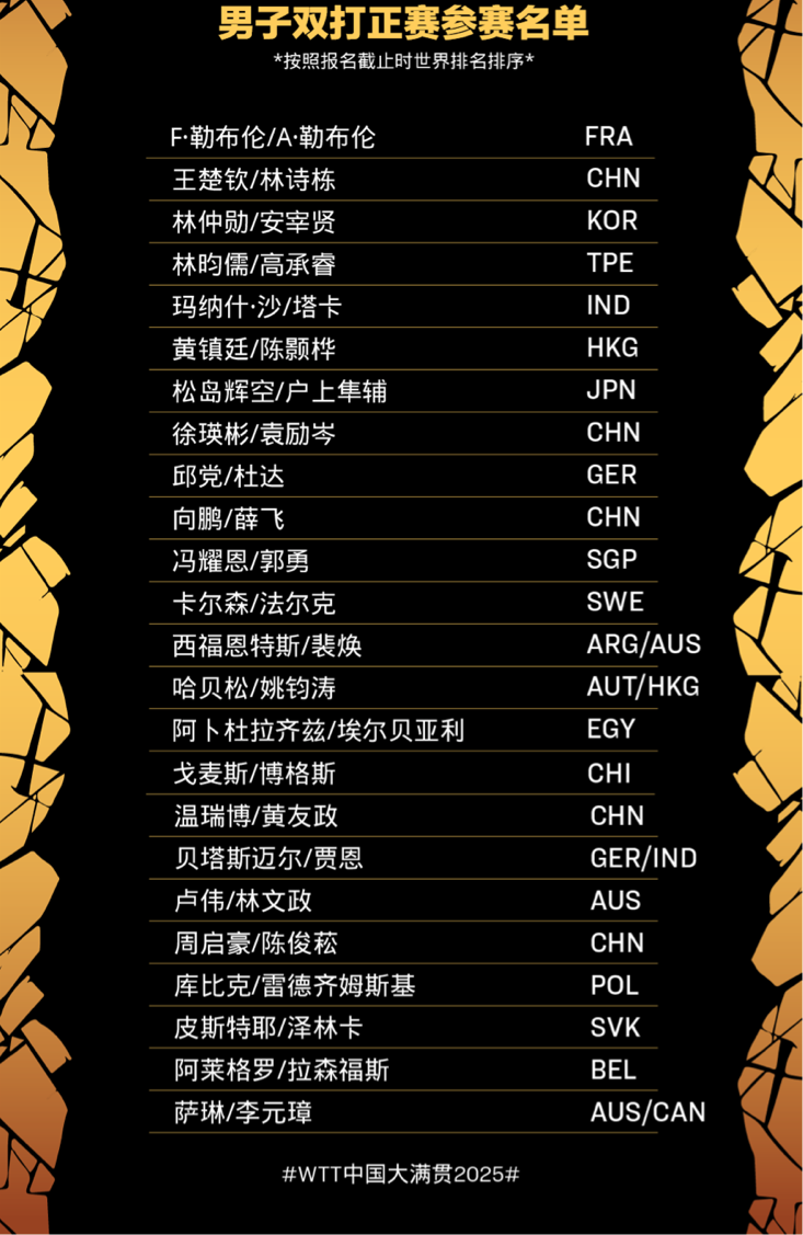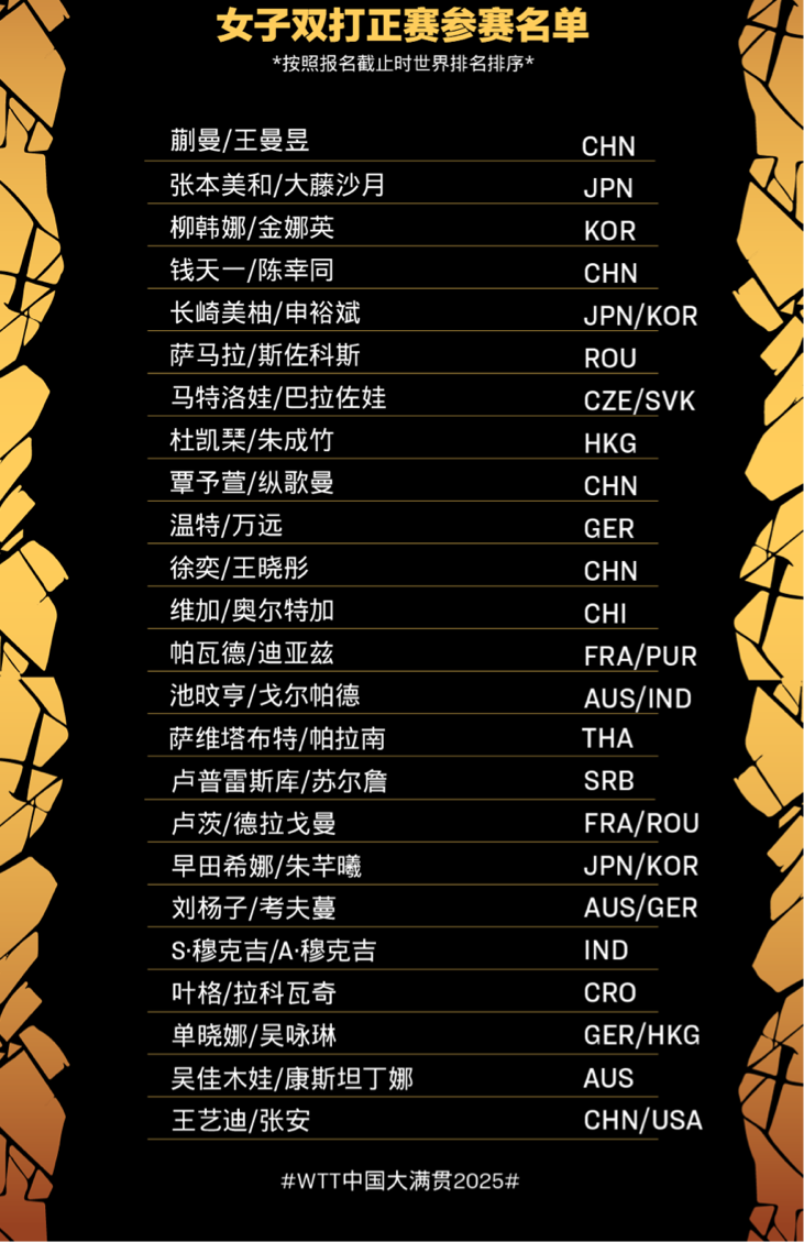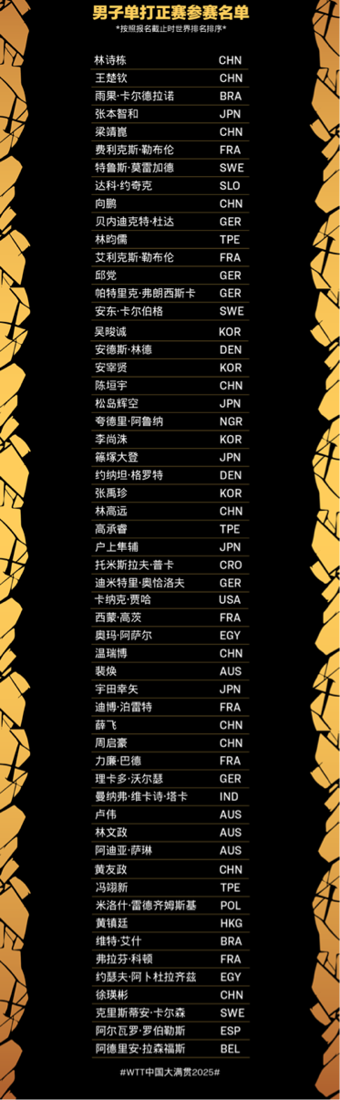 资格赛较量过后,WTT中国大满贯2025赛事将于9月28日进入正赛阶段。届时,王楚钦、孙颖莎等世界顶尖乒乓球选手将悉数登场,向赛事冠军及2000点世界排名积分发起冲击。