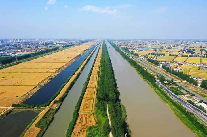 苏北灌溉总渠(左)与淮河入海水道(右)