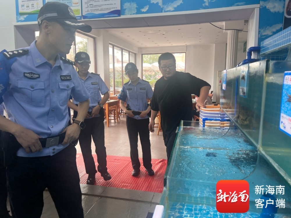 离开沙滩后,杨超和队员们又马不停蹄地来到一家海鲜店巡查。“海鲜一定要明码标价,店内监控要做到无死角,如果存在‘鬼秤’‘调包’等欺诈顾客行为,我们一定会严查。”在店内的海鲜池旁,杨超查看了海鲜商家使用称具是否合规,告诫商家诚信经营。