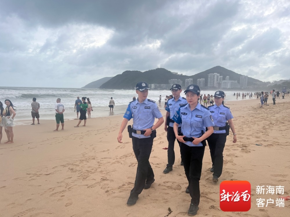 “景区客流量大,游客物品遗失等警情多发,遇到游客疏于看管个人物品时,我们一定要第一时间提醒。”在大东海游客中心门前,杨超向队员们说起了巡逻重点。“还有,台风刚过,海边的海浪比较大,为安全起见,我们也要提醒游客不要下海游泳。”