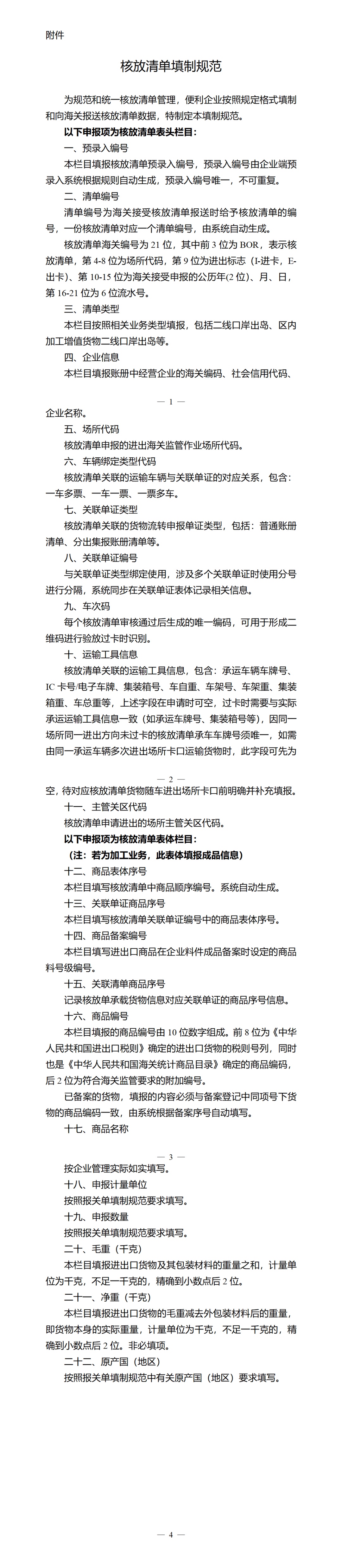 企业应按照核放清单填制规范向海关报送核放清单数据信息。目前,海口海关已制定发布填制规范,其中主体包括商品表体序号、关联单证商品序号、商品备案编号等。