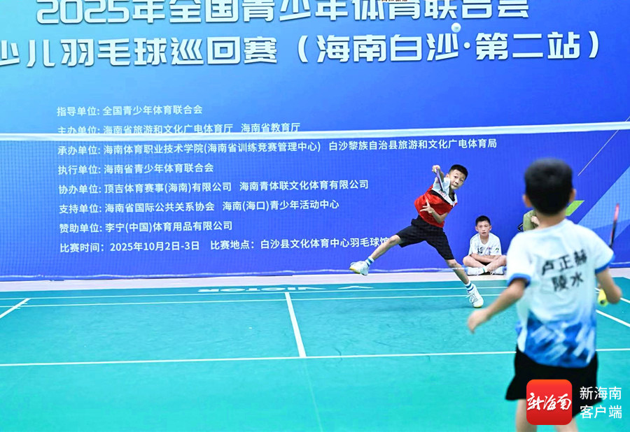 南海网、新海南客户端10月2日消息(记者 陈望)10月2日,2025年“奔跑吧·少年”全国青少年体育联合会青少儿羽毛球巡回赛(海南赛区)在白沙黎族自治县文化体育中心羽毛球馆燃情开赛,来自全国各地近500名青少年羽毛球爱好者齐聚白沙,挥拍竞逐、绽放青春活力。