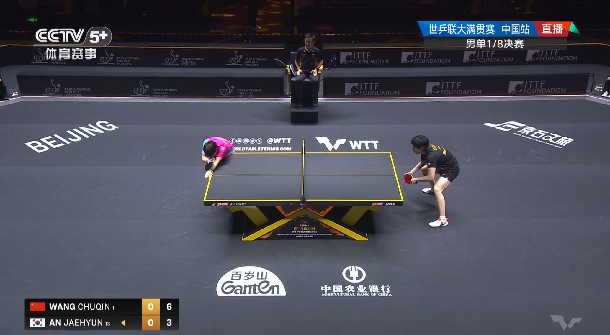 WTT中国大满贯男单1/8决赛,王楚钦3比0战胜韩国选手安宰贤,晋级8强,实现对后者压倒性的7战全胜。比赛中面对安宰贤的拧拉搏杀,王楚钦打出一连串闪电般的正反手衔接得分,彻底终结比赛悬念。
